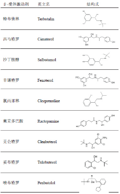 特布他林、西馬特羅、沙丁胺醇、非諾特羅、氯丙那林、萊克多巴胺、克侖特羅、妥布特羅和噴布特羅等9種β-受體激動劑信息如表所示。