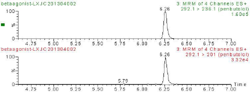 按照中華人民共和國國家標(biāo)準(zhǔn) 農(nóng)業(yè)部1025號公告-18-2008公告《動物源食品中9種β-受體激動劑殘留檢測方法-超高效液相色譜-串聯(lián)質(zhì)譜法》提供的方法進(jìn)行檢測。