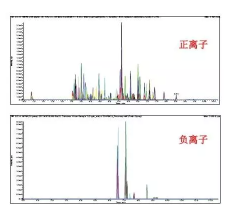 質(zhì)譜采用電噴霧(ESI)正負離子化、MRM采集方式 ,同一液相色譜方法,LC-MS/MS分析時間為13.5 min。
