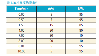 色譜柱:Brownlee SPP C18,100 mm*2.1 mm,2.7μm (貨號:N9308404)