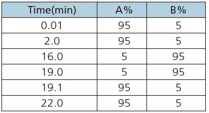 流動(dòng)相: A: H2O(0.1%甲酸),B: Acetonitrile;