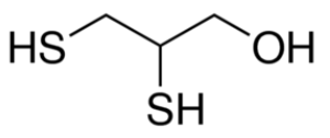 1,2-Dimercapto-3-propanol; 1,2-Dithioglycerol; 2,3-Dimercapto-1-propanol; 2,3-Dimercaptopropanol; 2,3-Dithiopropan-1-ol; 2,3-Dithiopropanol; 3-Hydroxy-1,2-propanedithiol; Antoxol; BAL; British Antilewisite; DMP; Dicaptol; Dimercaprol; Dimersol; Dithioglycerine; Dithioglycerol; NSC 39515; NSC 4646; Panobal; Sulfactin; α,β-Dithioglycerol