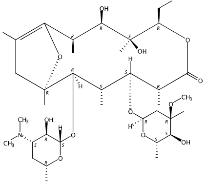 6,15-Dioxabicyclo[10.2.1]pentadecane, erythromycin deriv.; 8,9-Didehydro-9-deoxo-6-deoxy-6,9-epoxyerythromycin; 8,9-Anhydroerythromycin A 6,9-hemiketal; BRL 46357ER; EM 201; Erythromycin enol ether; ME 4