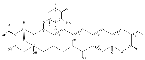 (1R,7E,11R,12Z,13E,15E,17E,19E,21R,23S,24R,25S)-21-[(3-Amino-3,6-dideoxy-β-D-mannopyranosyl)oxy]-12-ethylidene-1,5,6,25-tetrahydroxy-11-methyl-9-oxo-10,27-dioxabicyclo[21.3.1]heptacosa-7,13,15,17,19-pentaene-24-carboxylic acid (ACI); 10,27-Dioxabicyclo[21.3.1]heptacosa-7,13,15,17,19-pentaene-24-carboxylic acid, 21-[(3-amino-3,6-dideoxy-β-D-mannopyranosyl)oxy]-12-ethylidene-1,5,6,25-tetrahydroxy-11-methyl-9-oxo-, (1R,7E,11R,12Z,13E,15E,17E,19E,21R,23S,24R,25S)- (ACI)