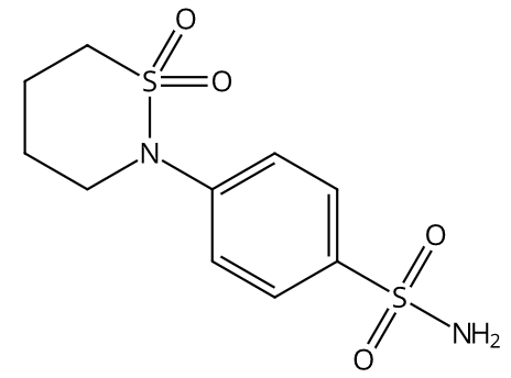 Benzenesulfonamide, 4-(tetrahydro-1,1-dioxido-2H-1,2-thiazin-2-yl)-; Benzenesulfonamide, 4-(tetrahydro-2H-1,2-thiazin-2-yl)-, S,S-dioxide; Benzenesulfonamide, p-(tetrahydro-2H-1,2-thiazin-2-yl)-, S,S-dioxide (8CI); Benzenesulfonamide, p-(tetrahydro-2H-1,2-thiazin-2-yl)-, dioxide (6CI,7CI); 2H-1,2-Thiazine, benzenesulfonamide deriv.; 2H-1,2-Thiazine, tetrahydro-2-p-sulfamoylphenyl-, 1,1-dioxide (6CI); 4-(Tetrahydro-1,1-dioxido-2H-1,2-thiazin-2-yl)benzenesulfonamide; 2-(p-Sulfamoylphenyl)-tetrahydro-2H-1,2-thiazine 1,1-dioxide; 2H-1,2-Thiazine, 2-[4-(aminosulfonyl)phenyl]tetrahydro-, 1,1-dioxide; A 168; A 168 (anticonvulsant); Bayer A 168; Conadil; Contravul; Elisal; Ospolot; Riker 594; Sulphenyltame; Sulphenytame; Sulphthiame; Sulthiam; Sulthiame; Sulthiamine; Sultiam; Sultiame; Trolone; p-(Tetrahydro-2H-1,2-thiazin-2-yl)benzenesulfonamide dioxide |